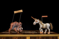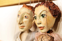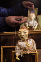 Ein Spiel für einen alten König, 6 Marionetten, zwei Riesen und dem königlichen Nähkasten.